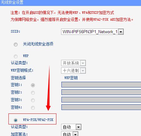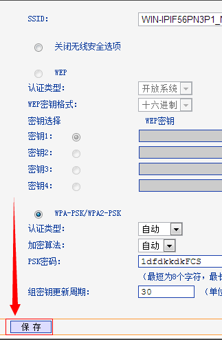 选择加密方式,建议使用如图的”wap-psk/wap2-psk“,安全系数更高。